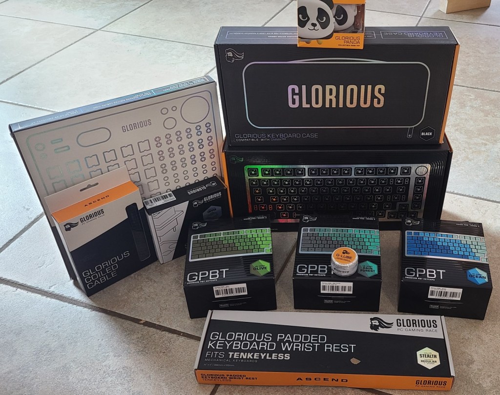 Here are a few pictures of everything I ordered from Glorious, along with the keyboard: