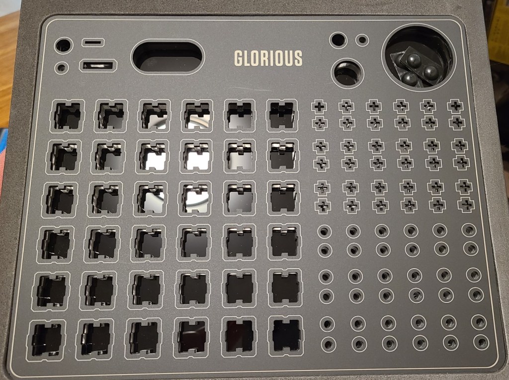 A note for those of you interested in buying the board, what you’re purchasing is a “bare-bones” keyboard. As in, it doesn’t come with any switches or keycaps attached. Those you’ll have to buy separately (Glorious offers a variety of switches and have just launched several new sets of keycaps. The ones you see above are the “Olive” keycaps that they had in stock).