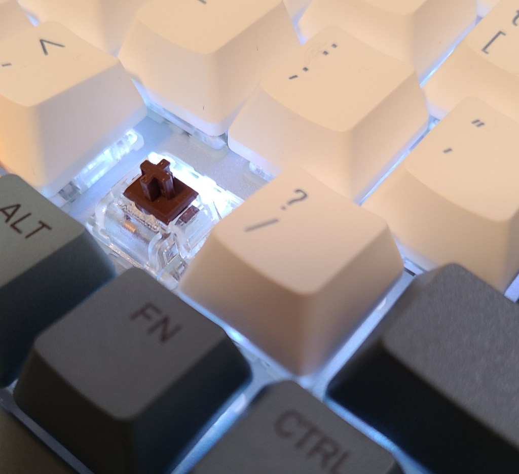 One minus to the board is the lighting. It’s not very bright, which means it’s not that noticeable. The color of the lights also feel really muted. Maybe it’s the housing on the switches that’re blocking the shine since they have a plastic covering over the led instead of a hole, but it’s really not adding much to the board as it is now.