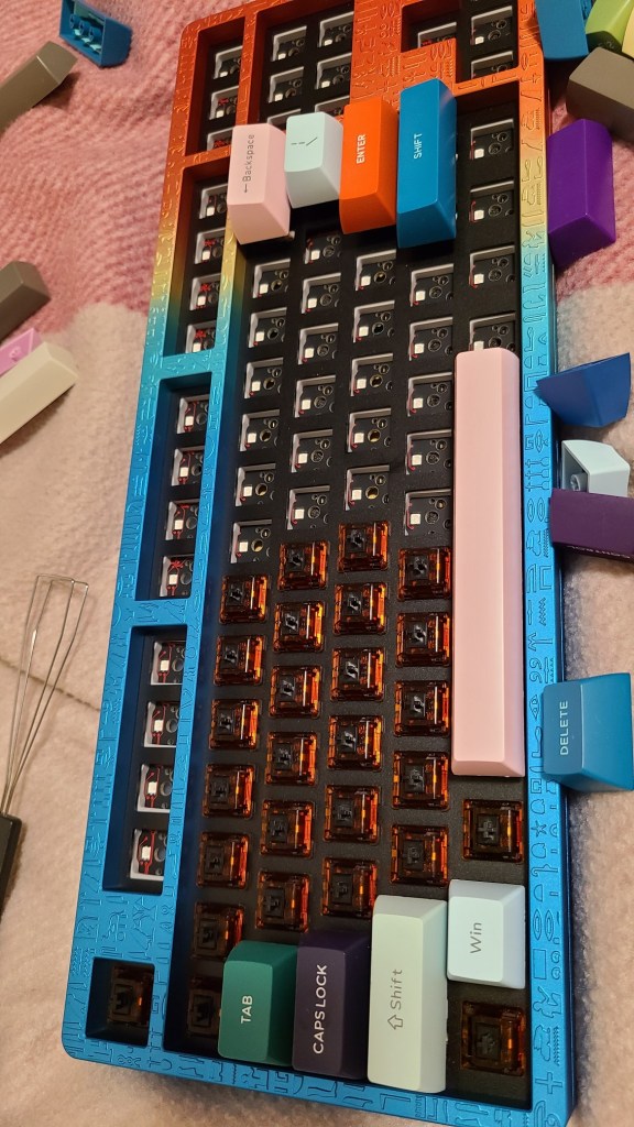 Okay, so I’ll be honest here. The switches weren’t even the hardest part. Let me tell you, the hardest thing about this keyboard, and the thing that kept this keyboard incomplete on my desk for weeks, was trying to figure out what keycap set to put on them. Seriously, what do you pair with a ~~~RAINBOW~~~ board?